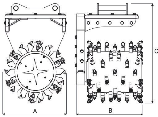 MRT Multigrinder 7, compatible with 16–25 ton excavators, is designed for grinding asphalt and working on hard or frozen ground.